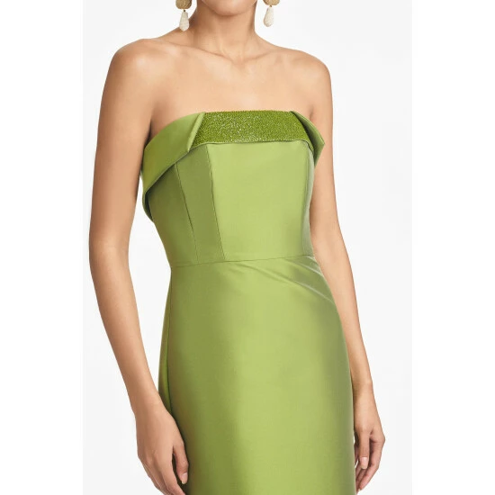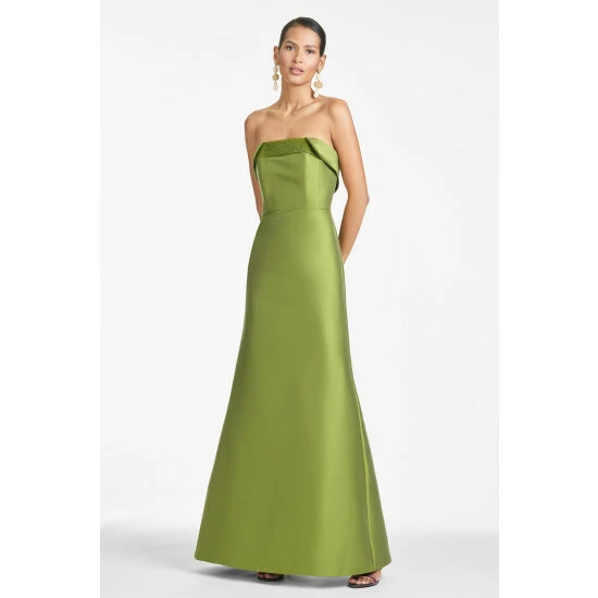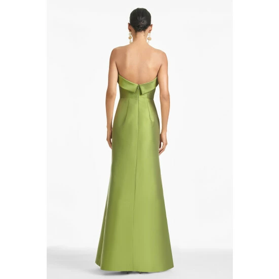 – Model is 5’11 wearing a size 2- 62″ long- Back zipper- Stretched mikado